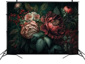 Koyu Tuval Üzerinde Açan Çiçeklerin Dramatik Güzelliği Fon Kumaş