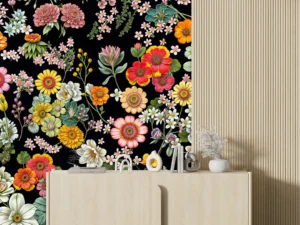 Koyu Tuval Üzerinde Bahar Esintili Çiçekler Fon Perde