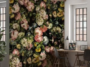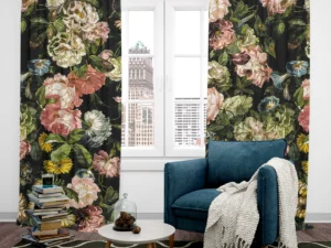 Koyu Renkler Arasında Saklı Zarif Çiçekler Fon Perde