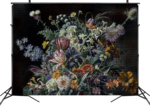 Karanlık Tuvalde Açan Nadide Çiçekler Fon Perde