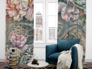 Pastel Renklerin Çiçekler ile Dansı Fon Perde