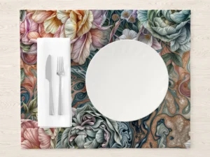 Pastel Renklerin Çiçekler ile Dansı Masa Örtüsü