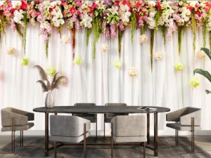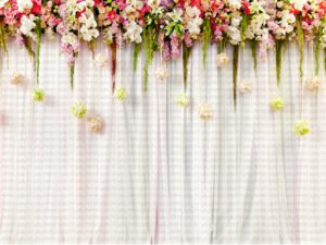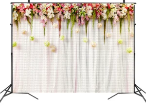 Kumaş Önünde Çiçeklerin Ahenkli Dansı Fon Perde