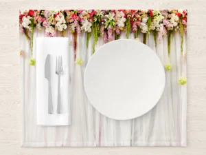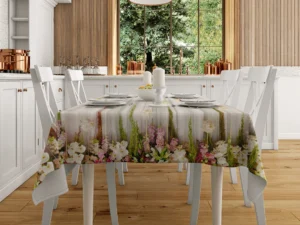 Kumaş Önünde Çiçeklerin Ahenkli Dansı Masa Örtüsü