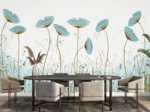 Mavi Çiçeklerin Huzurlu Dansı Poster Duvar Kağıdı