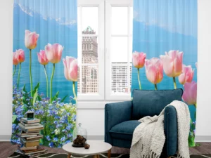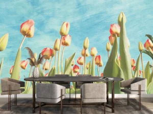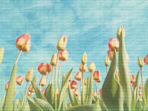 Gökyüzüne Uzanan Zarafetle Pastel Renkli Lale Tarlası Fon Perde