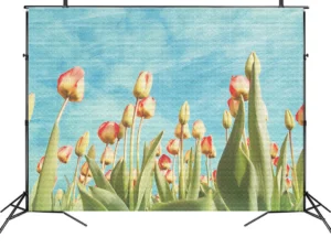 Gökyüzüne Uzanan Zarafetle Pastel Renkli Lale Tarlası Fon Kumaş