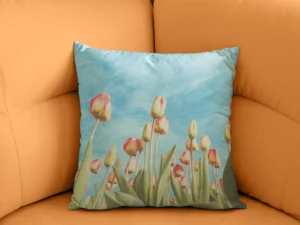 Gökyüzüne Uzanan Zarafetle Pastel Renkli Lale Tarlası Kırlent