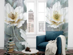 Zarafetin ve Sükunetin İncisi Beyaz Çiçek Fon Perde