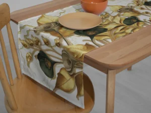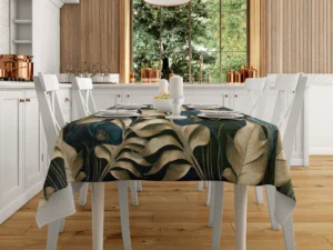 Altın Dokunuşlu Çiçek Deseni Lüksün ve Zarafetin Buluşması Masa Örtüsü