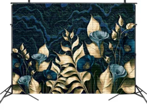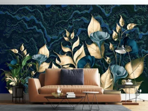 Altın Dokunuşlu Mavi Çiçeklerin Büyüsü Lüks ve Zarafet Poster Duvar Kağıdı
