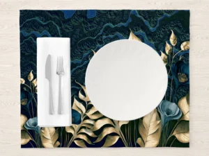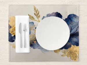 Altın Dokunuşlu Mavi Çiçeklerin Büyüsü Lüks ve Zarafet Amerikan Servis