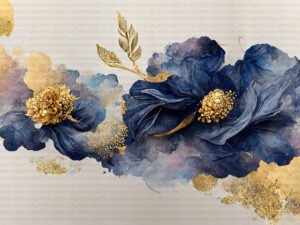 Altın Dokunuşlu Mavi Çiçeklerin Büyüsü Lüks ve Zarafet Fon Kumaş