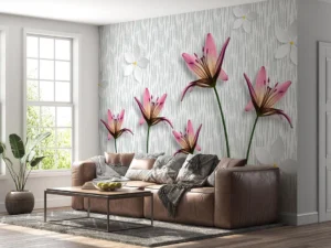Pembe Zarafet Beyaz Dokunuşlarla Çiçek Bahçesi Poster Duvar Kağıdı