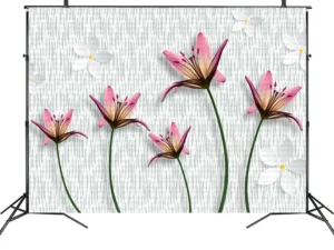 Pembe Zarafet Beyaz Dokunuşlarla Çiçek Bahçesi Fon Kumaş