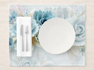 Mavi Çiçeklerin Zarafetiyle Zarif Dokunuşlu Çiçek Buketi Masa Örtüsü