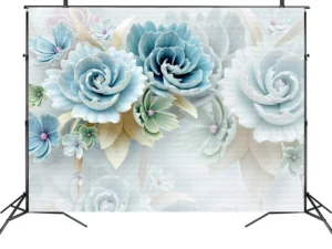 Mavi Çiçeklerin Zarafetiyle Zarif Dokunuşlu Çiçek Buketi Fon Kumaş