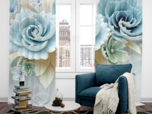 Mavi Çiçeklerin Zarafetiyle Zarif Dokunuşlu Çiçek Buketi Fon Perde