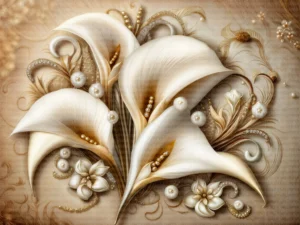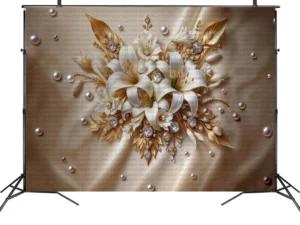 Bu büyüleyici tasarım, incilerin eşsiz zarafetini ve çiçeklerin doğal güzelliğini bir araya getiriyor. Krem ve beyaz tonlarındaki çiçekler, incilerle süslenerek mekana sofistike ve göz alıcı bir hava katıyor. Altın ...