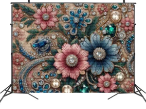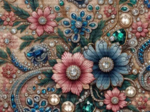 Göz Alıcı Pırlantalı Dokunuşlar ile Kabartmalı Çiçek Bahçesi Fon Kumaş
