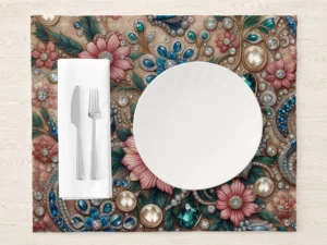 Göz Alıcı Pırlantalı Dokunuşlar ile Kabartmalı Çiçek Bahçesi Masa Örtüsü