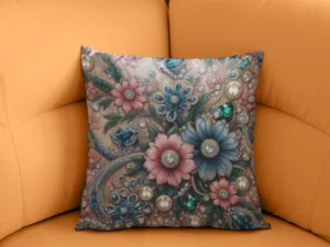Göz Alıcı Pırlantalı Dokunuşlar ile Kabartmalı Çiçek Bahçesi Kırlent