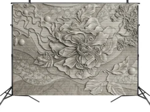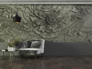 Gri Tonların Asaletiyle 3D Kabartma Çiçek Motifi Poster Duvar Kağıdı