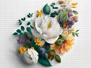 Romantizmin Dokunuşu ile Kabartmalı Çiçek Buketi Fon Kumaş