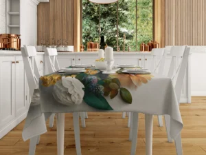 • Zarafetin ve Sükunetin İncisi Beyaz Çiçek Masa Örtüsü