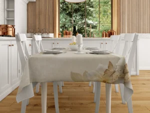 Zarafetin ve Sükunetin İncisi Beyaz Çiçek Masa Örtüsü