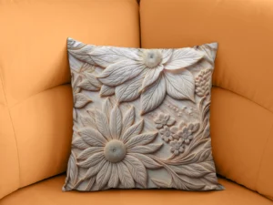 Pastel Tonlarda Kabartma Çiçek Bahçesi Sanat Eseri Kırlent