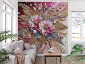 Pırıltılı Detaylarla Zenginleştirilmiş Eşsiz Çiçek Kompozisyonu Poster Duvar Kağıdı