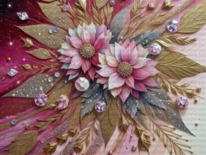 Pırıltılı Detaylarla Zenginleştirilmiş Eşsiz Çiçek Kompozisyonu Fon Kumaş