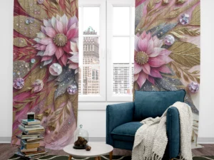 Pırıltılı Detaylarla Zenginleştirilmiş Eşsiz Çiçek Kompozisyonu Fon Perde