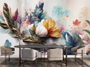 Pastel Renklerin Karışması Sonucu Büyülü Çiçek Deseni Amerikan Servis