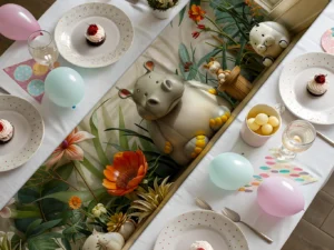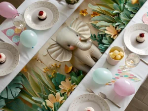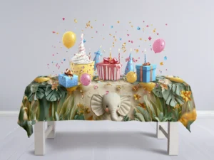 Neşeli Filin Renkli Balonlarla Oyunu Masa Örtüsü