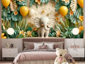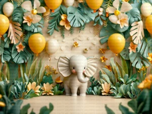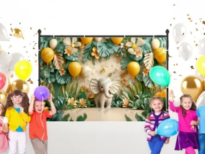 Neşeli Filin Renkli Balonlarla Oyunu Fon Perde