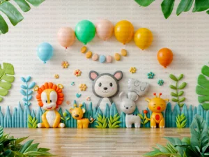 Neşeli Hayvanların Sevimli Oyuncakları ve Eğlenceli Balonları Fon Perde