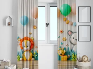 Neşeli Hayvanların Sevimli Oyuncakları ve Eğlenceli Balonları Fon Kumaş