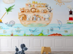 Gökkuşağı Altında Sevimli Dostlarla Nuh’un Gemisi Poster Duvar Kağıdı