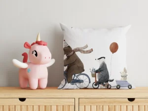 Parti Şapkalı Bisikletli Ayı ve Neşeli Dostlarının Balonlu Yolculuğu Kırlent