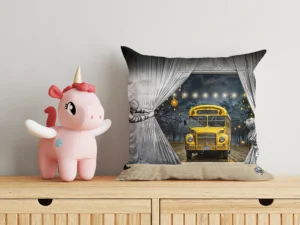 Perdenin Ardından Beliren Nostaljik Otobüs Kırlent