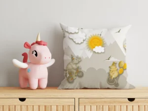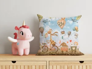 Gökyüzünde Süzülen Balonlar ve Neşeli Dostlarla Dolu Hayaller Diyarı Kırlent