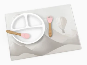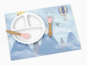 Dağların Üzerinde Balonlar ve Uçaklarla Neşeli Bir Yolculuk Masa Örtüsü