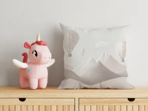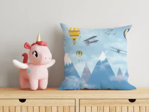 Dağların Üzerinde Balonlar ve Uçaklarla Neşeli Bir Yolculuk Kırlent