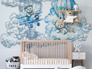 Bulutların Üzerinde Sevimli Ayılarla Rüya Dolu Bir Yolculuk Poster Duvar Kağıdı