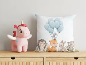 Çayırların Üzerinde Balonlarla Dans Eden Sevimli Orman Dostları Kırlent