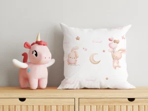 Bulutların Üzerinde Balonlarla Dans Eden Sevimli Tavşan Kırlent
