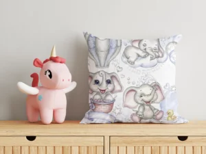 Bulutların Üzerinde Balonlarla Dans Eden Sevimli Yavru Filler Kırlent