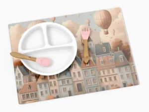 Bulutların Arasında Süzülen Sıcak Hava Balonlarıyla Hayaller Masa Örtüsü
